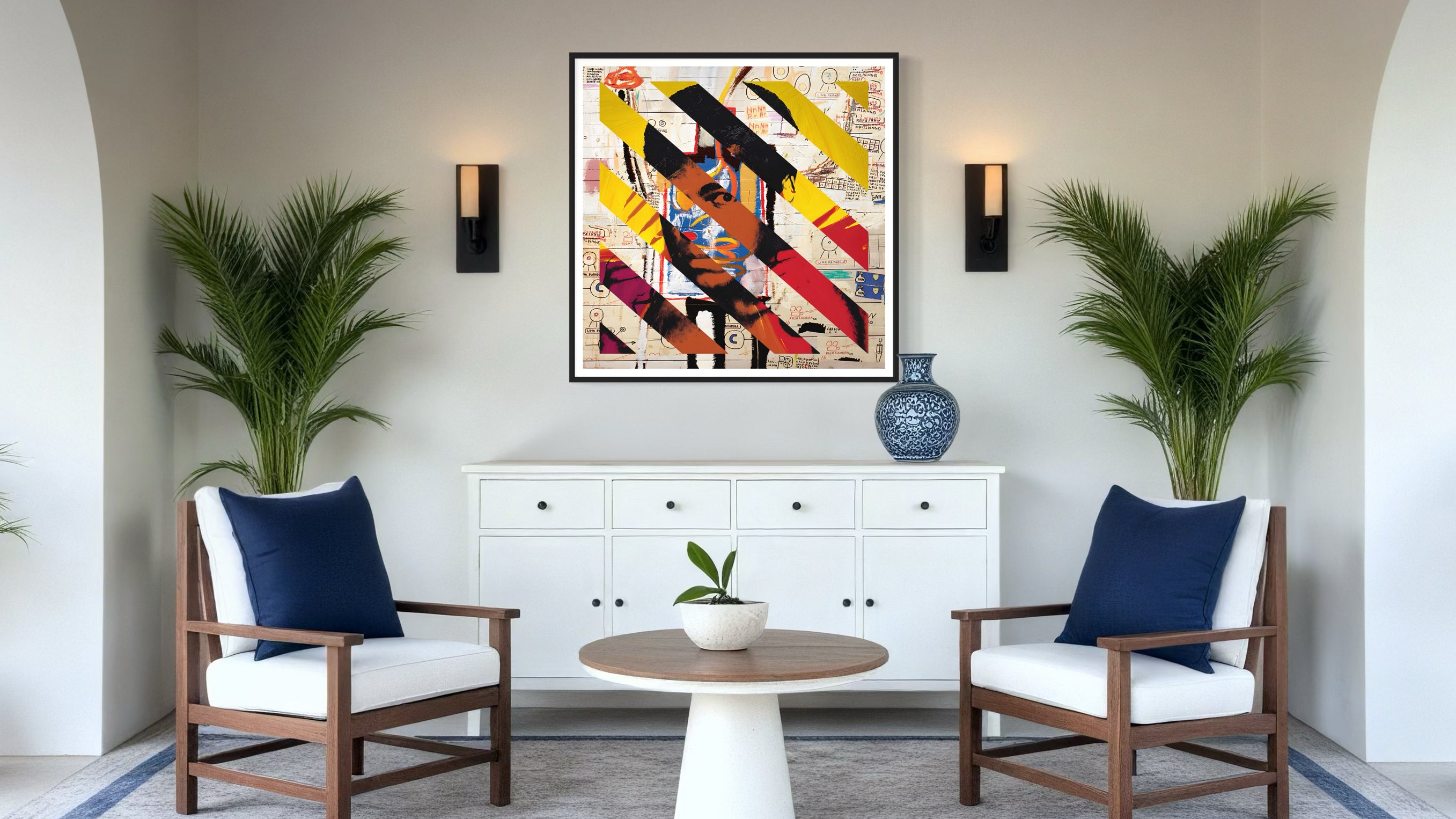 A fusion of legacy and reinvention, Layers of Legend deconstructs one of the most iconic faces in sports history—Muhammad Ali—through a modern, fragmented lens. Using Andy Warhol’s renowned portrait as a foundation, this piece reassembles the cultural icon with dynamic brushstrokes, abstract markings, and bold, intersecting lines that symbolize the complexity of his impact.
