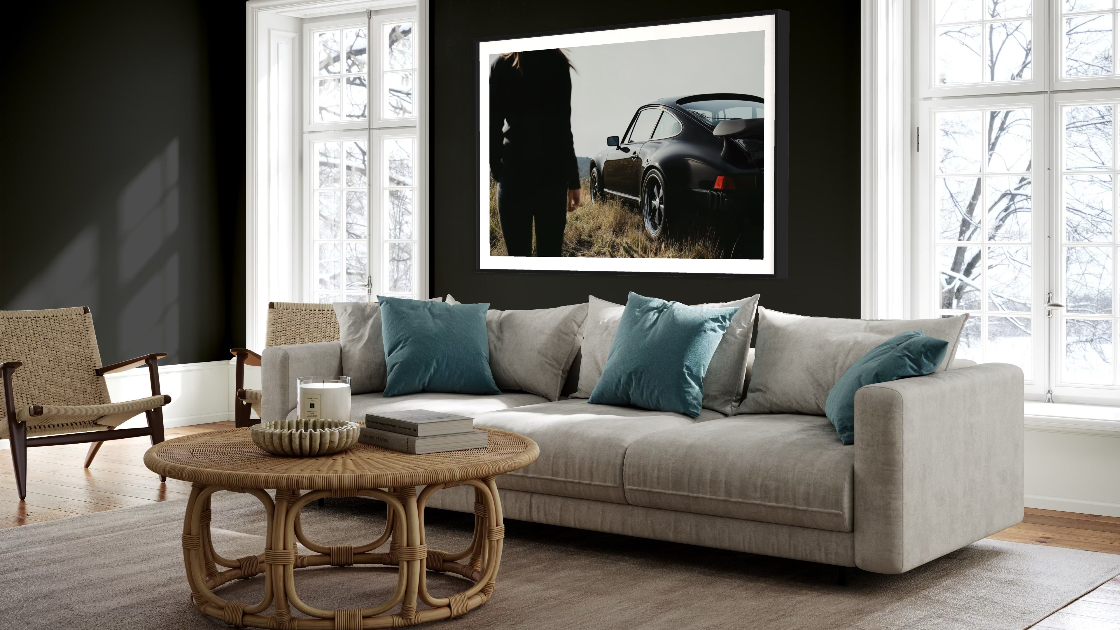 A quiet moment charged with anticipation—Arrival captures the unspoken tension between movement and stillness. The sleek silhouette of the car, bathed in soft light, stands as a symbol of power and precision, waiting on the edge of something unknown. A figure approaches, partially obscured, adding a sense of mystery and intrigue.