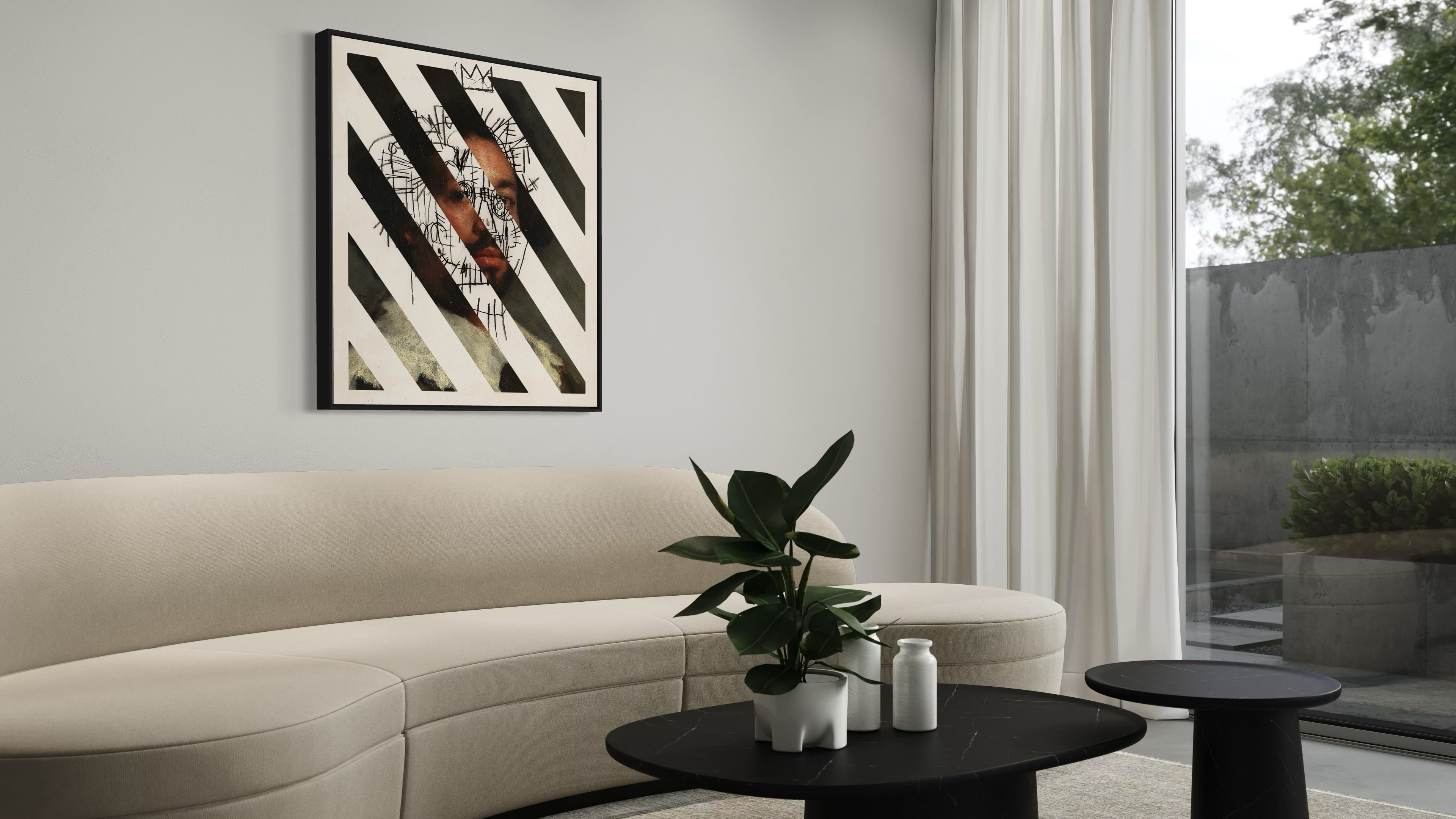 A face from the past, reimagined for the present—Crowned & Crossed Out collides the refined portraiture of Diego Velázquez with the raw, graffiti-like expression of Jean-Michel Basquiat. The subject, once an emblem of nobility and status, is now layered with chaotic lines, tally marks, and a crown—both exalted and erased in a single stroke.