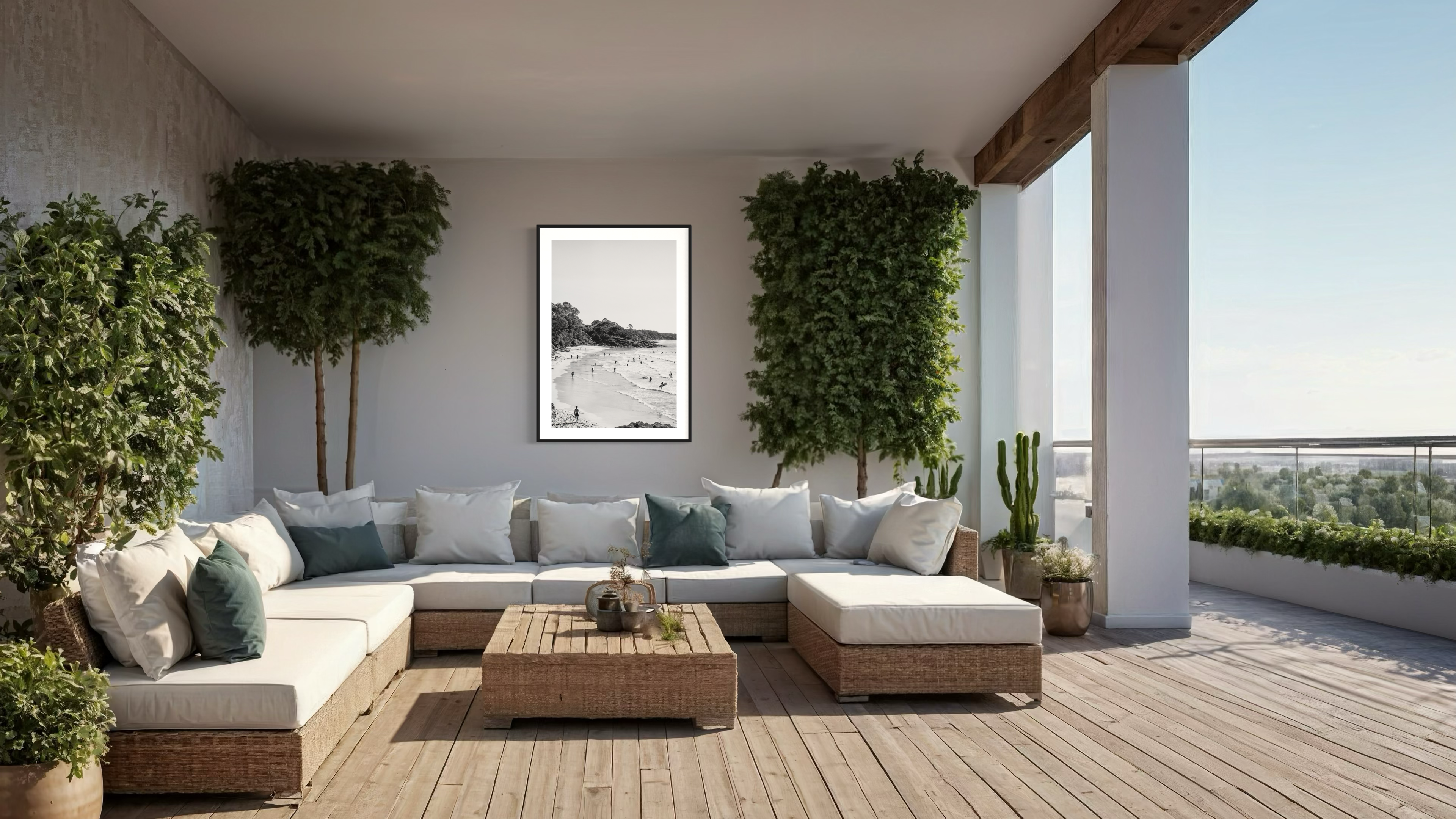 This image reflects the joy and tranquility of coastal life, making it a versatile piece for both homes and professional spaces. Its minimal color palette and tranquil composition provide a perfect visual escape, inviting viewers to imagine themselves immersed in the rhythm of the waves.