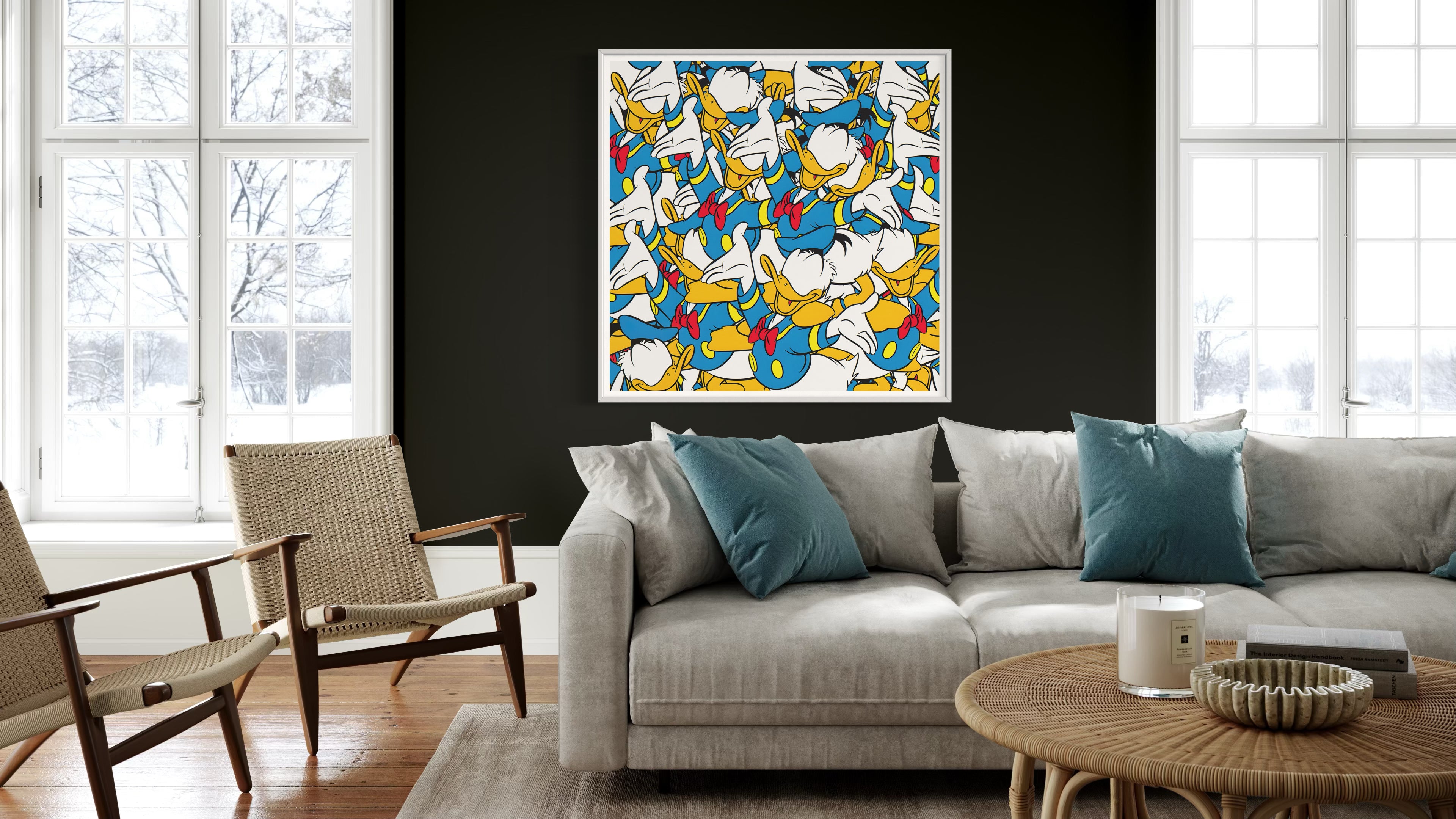 A whirlwind of energy, attitude, and motion, Duck Season captures the explosive chaos of a character caught in a loop of endless expression. Layered and multiplied, the bold primary hues of blue, yellow, and red collide in a rhythmic visual overload—each figure overlapping, each gesture amplifying the next.