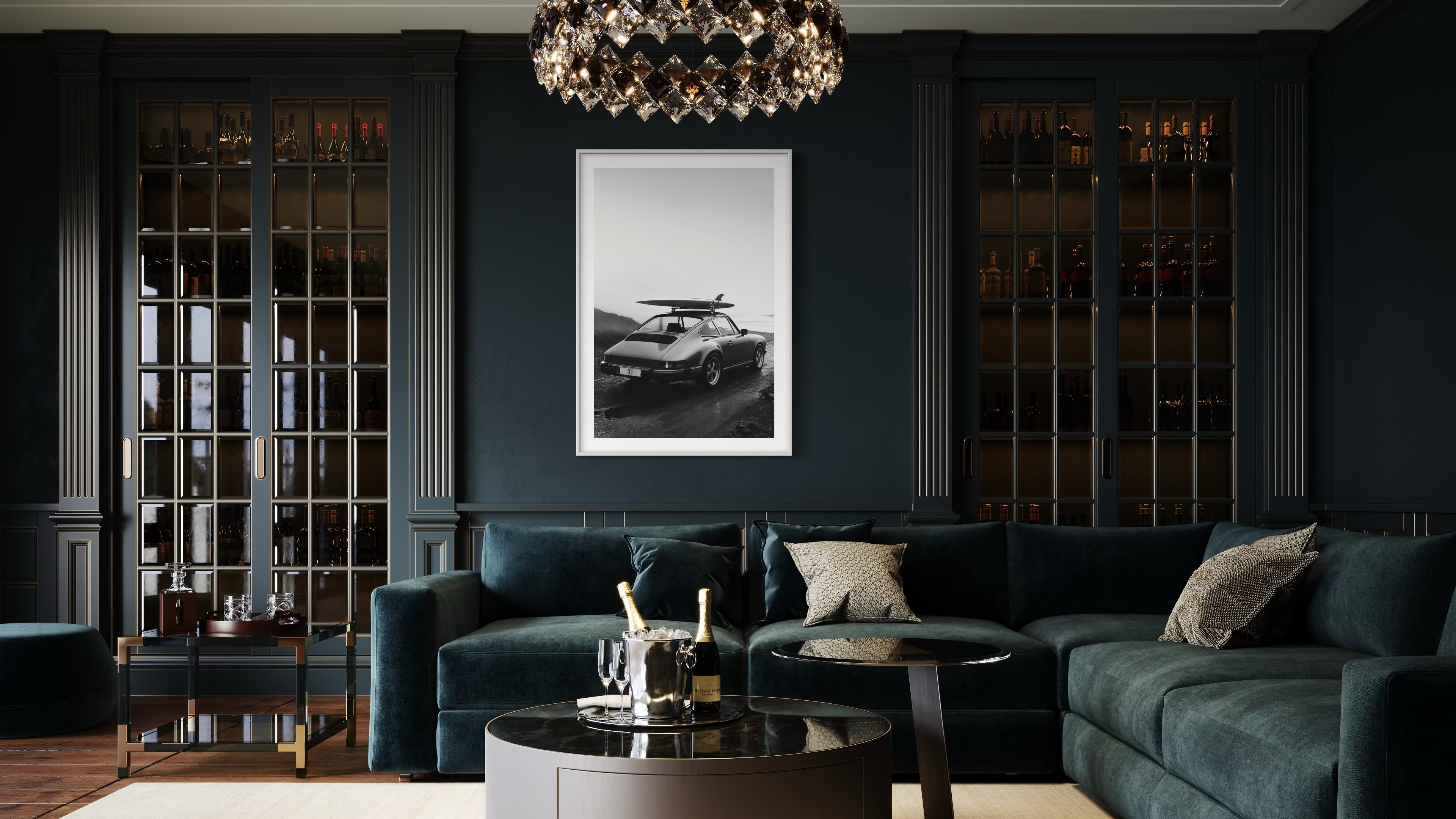 A journey measured not in miles, but in moments—Coastal Run captures the quiet anticipation of the open road and the endless pull of the ocean. The sleek silhouette of a classic machine, its surfboard secured for the next adventure, stands poised between land and sea, between movement and pause.