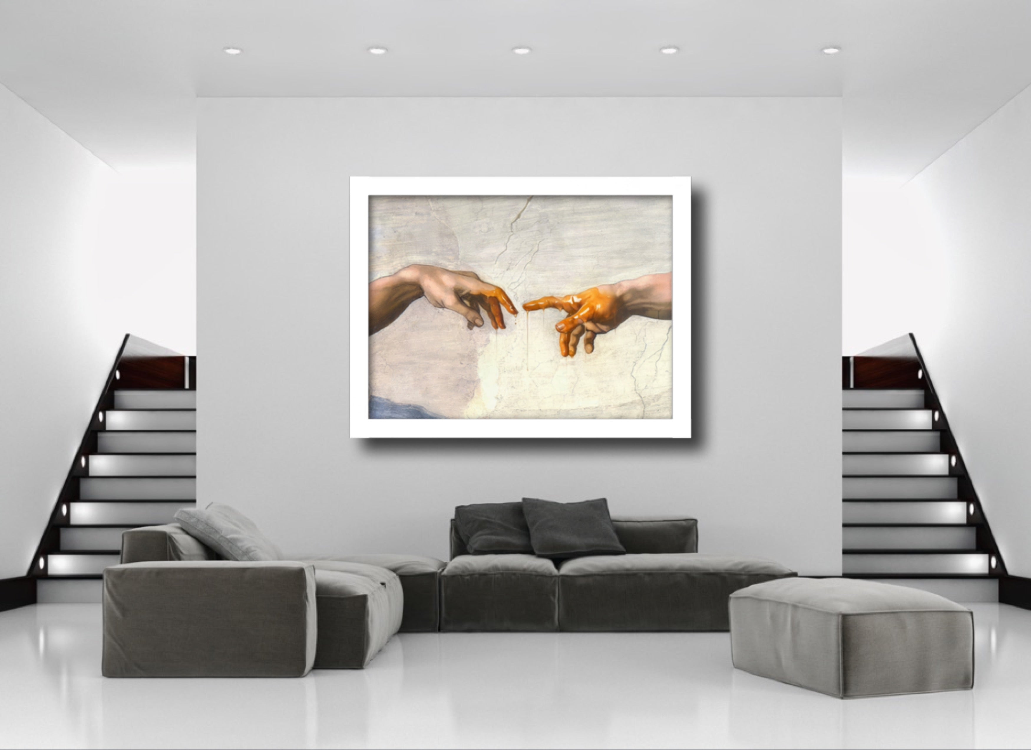 Embark on a unique reinterpretation of the biblical creation scene with The Creative Directive's "Golden Genesis." Witness the divine connection between Adam and God as their hands are graced by a transformative layer of honey. This golden touch offers a fresh perspective to this iconic scene, symbolizing the sweetness and divinity of creation. The artwork seamlessly blends classical art elements with contemporary symbolism, inviting you to explore the timeless beauty and profound meaning within. Embrace the harmonious fusion of the past and present with "Golden Genesis." Add this captivating masterpiece to your collection and let its transformative energy infuse your space. Shop now and immerse yourself in the sweetness of creation.